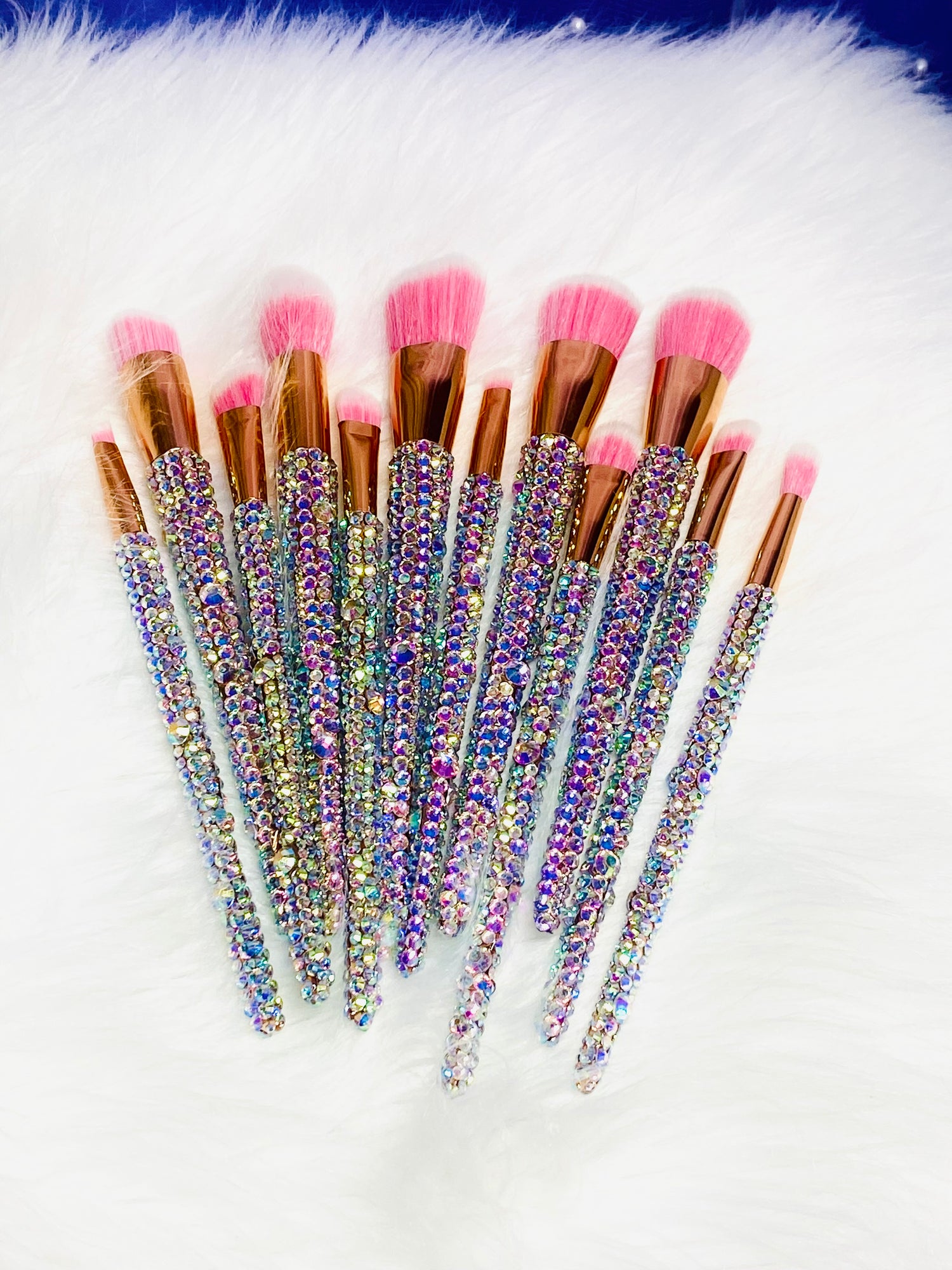 Set de 12 brochas, decoradas a mano con cristales, son de fibra de lana muy suaves.