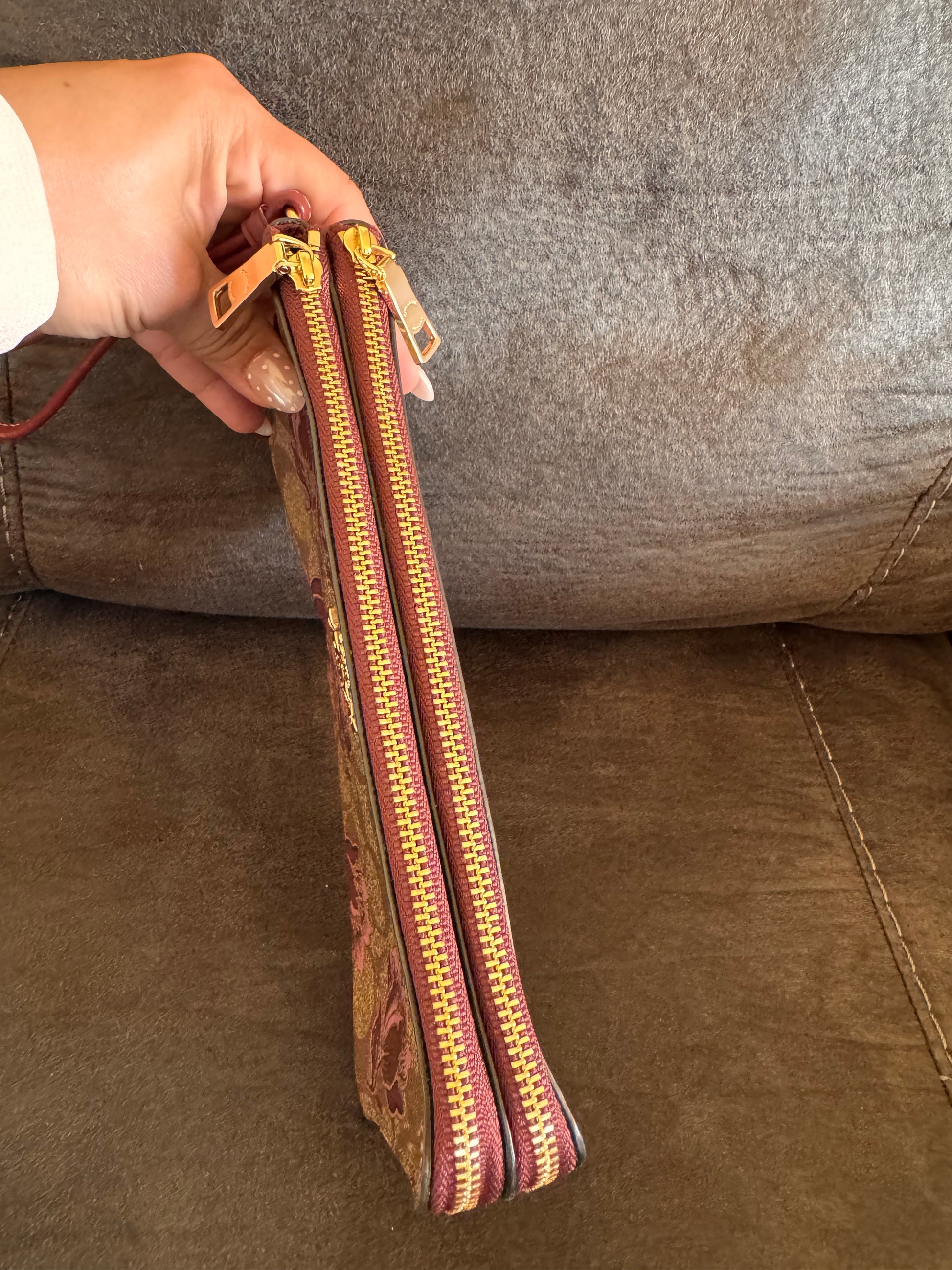Bolso Coach de mano con doble cremallera en lona distintiva con estampado de tulipanes del desierto.