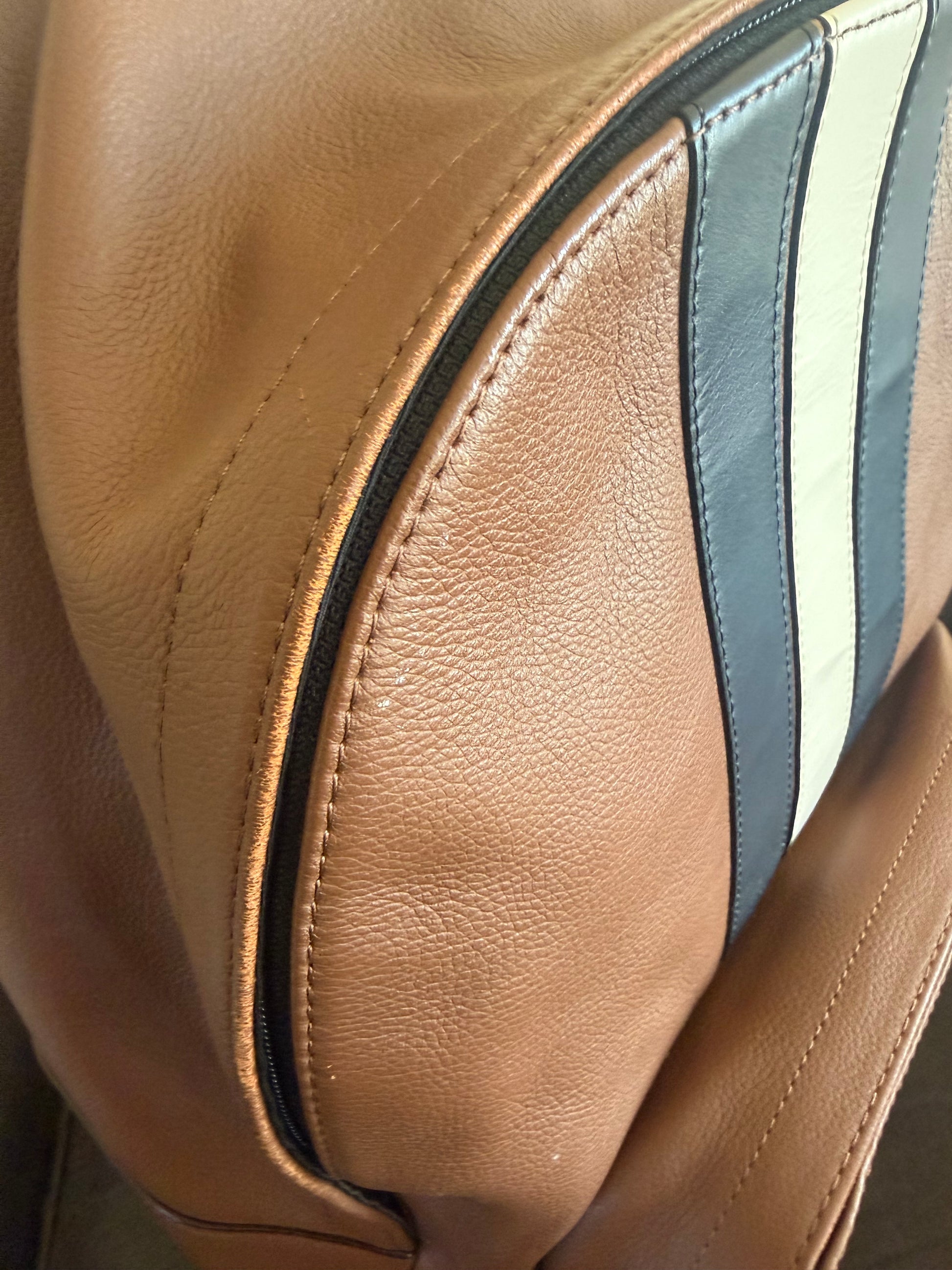 Condición: Buena, tiene marcas de uso en la piel alrededor de zipper.