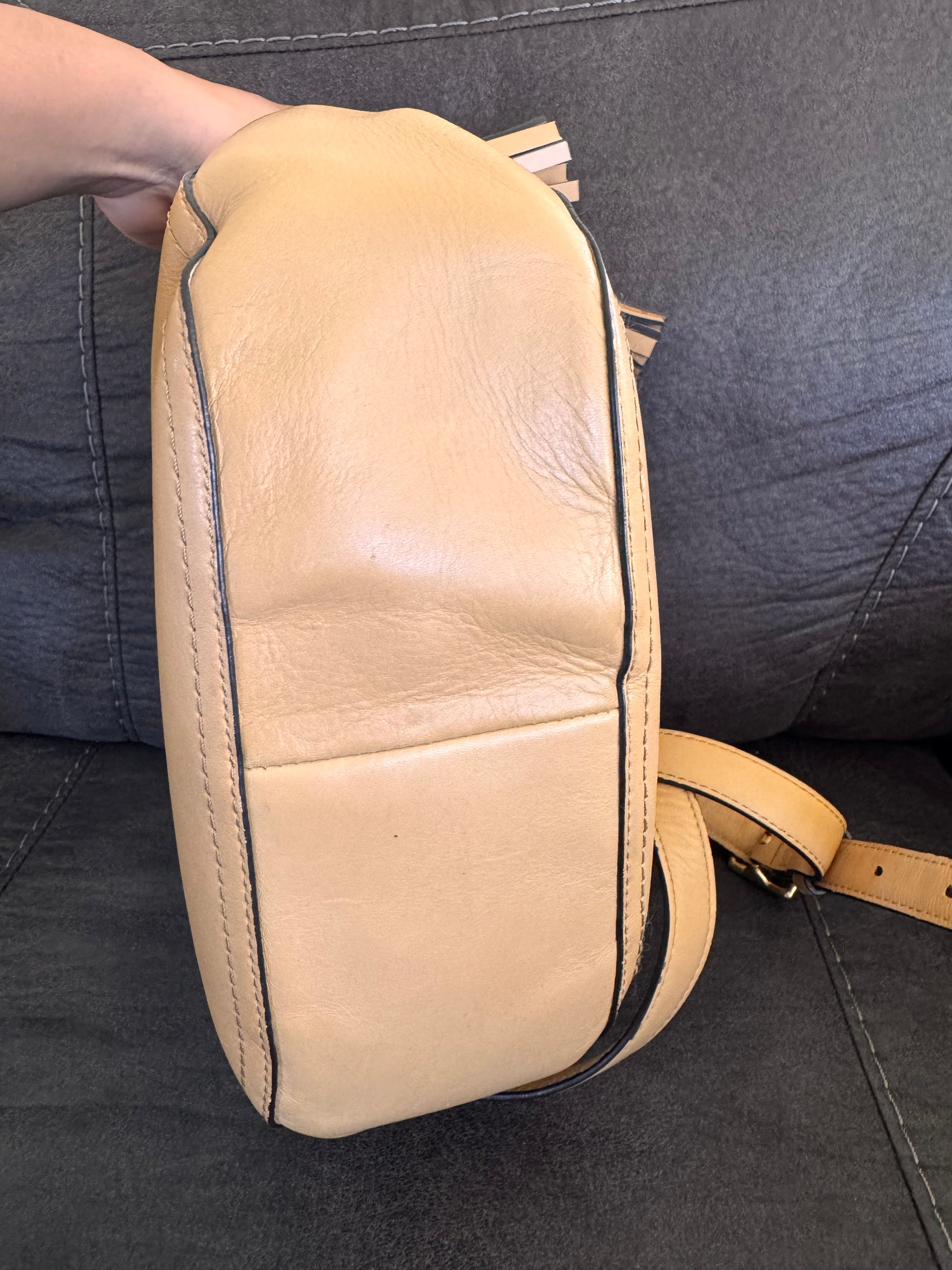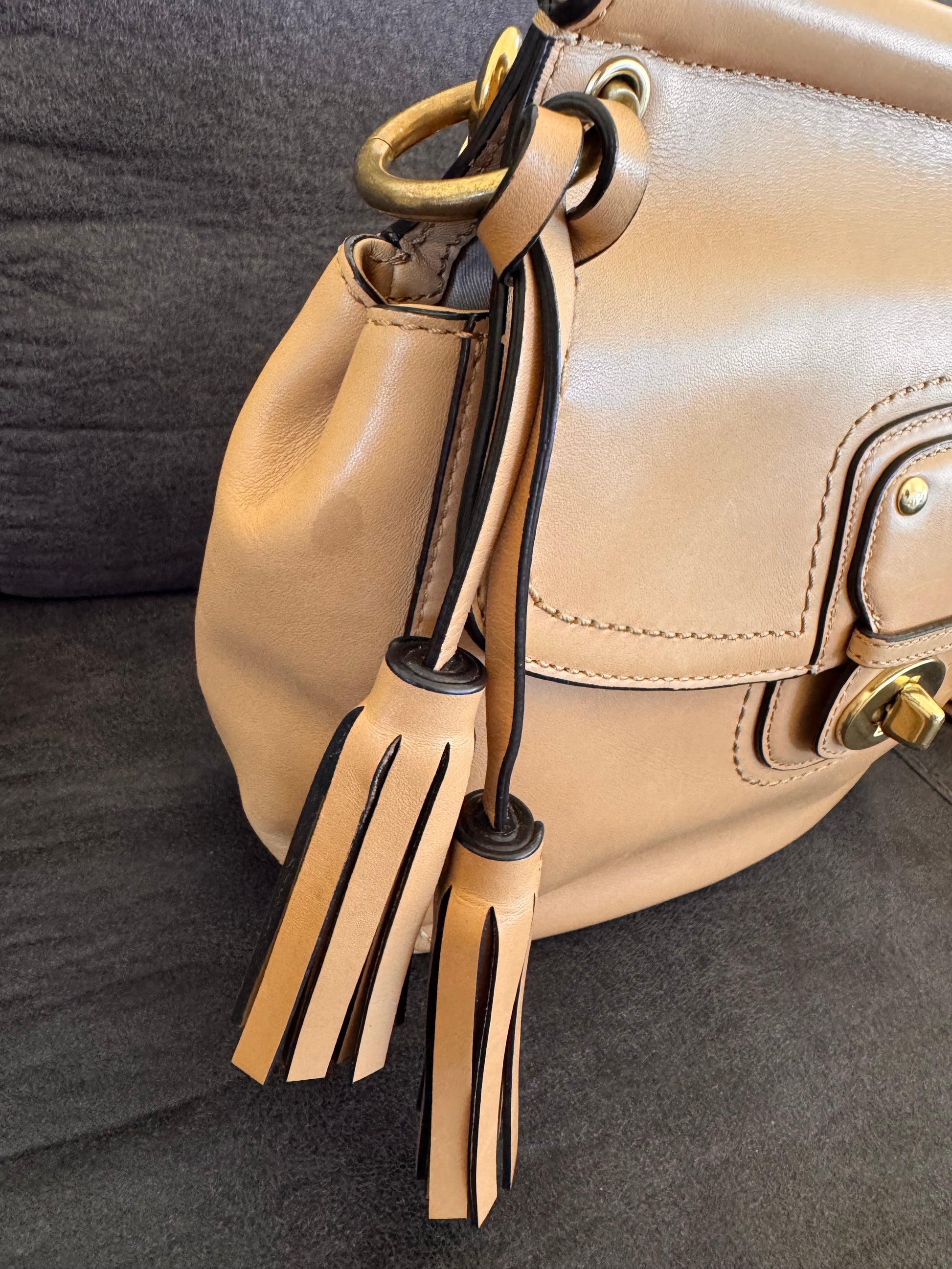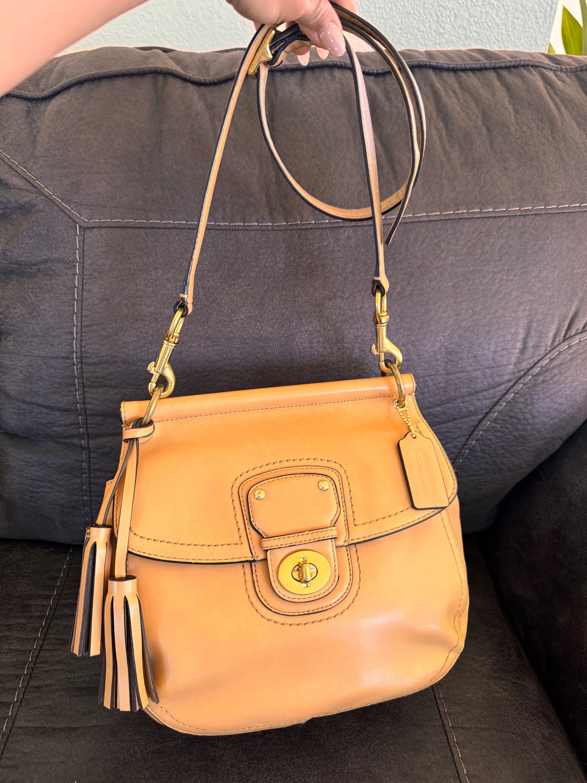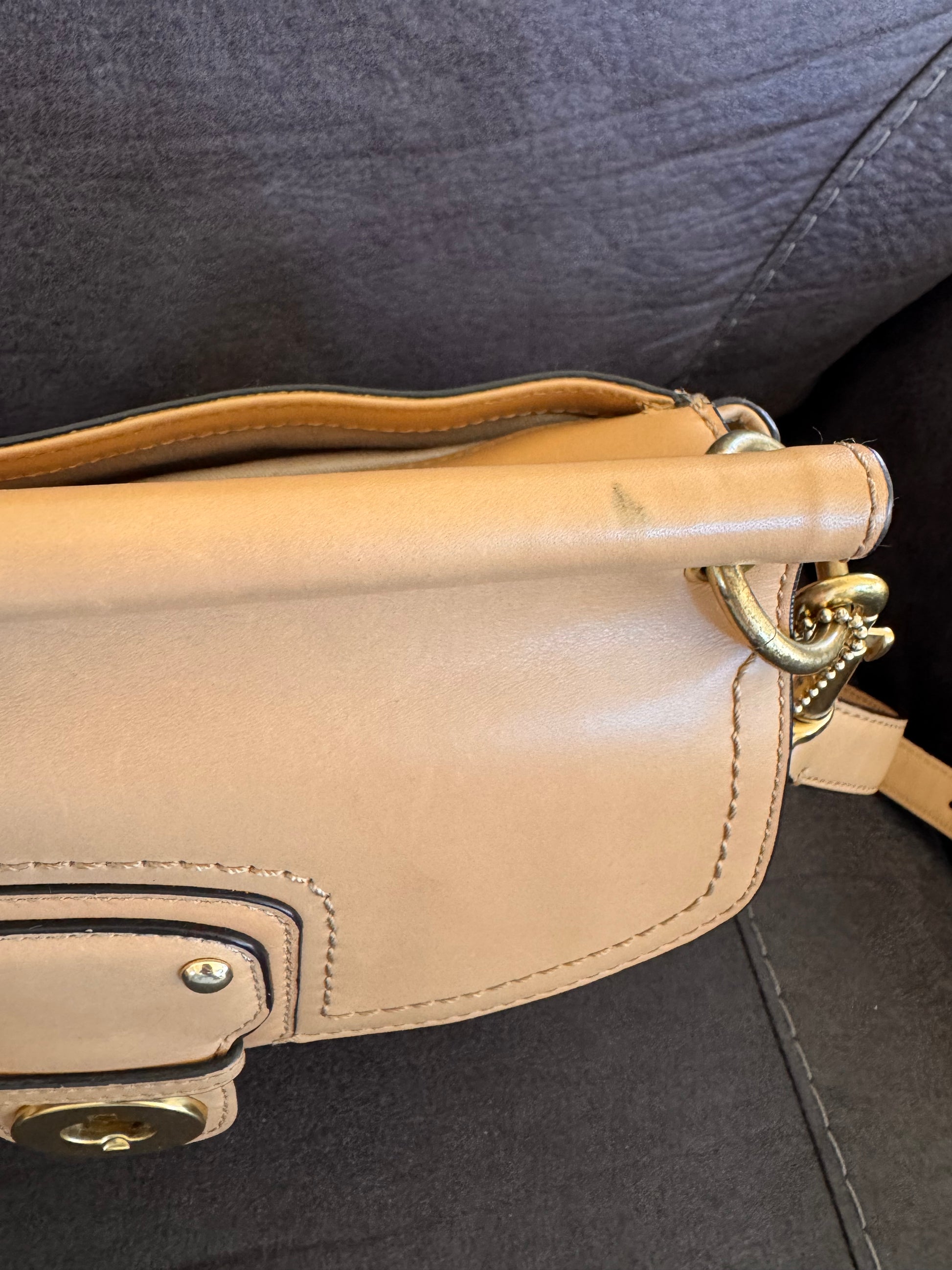 Es un bolso Coach Legacy Willies fabricado en piel británica color canela o vachetta.
