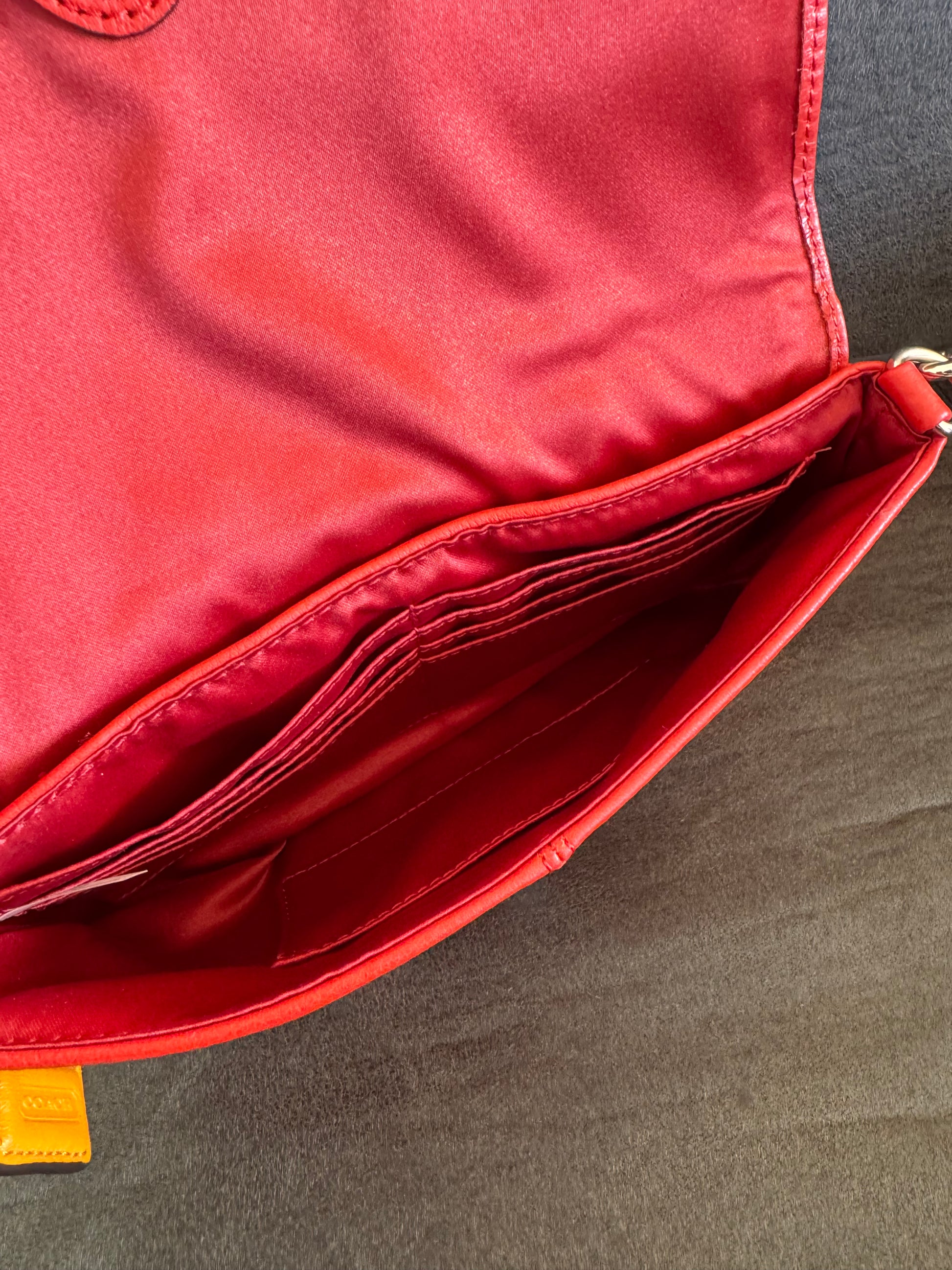 Este bolso de mano de piel granulada con un amplio cierre de solapa y herrajes plateados. Es de cierre a presión, bolsillos interiores para tarjetas de crédito (normalmente 8), un pequeño bolsillo interior y un bolsillo exterior trasero para acceder fácilmente a lo esencial. También cuenta con una correa de muñeca desmontable, lo que permite llevarlo como bolso de mano o un clutch.