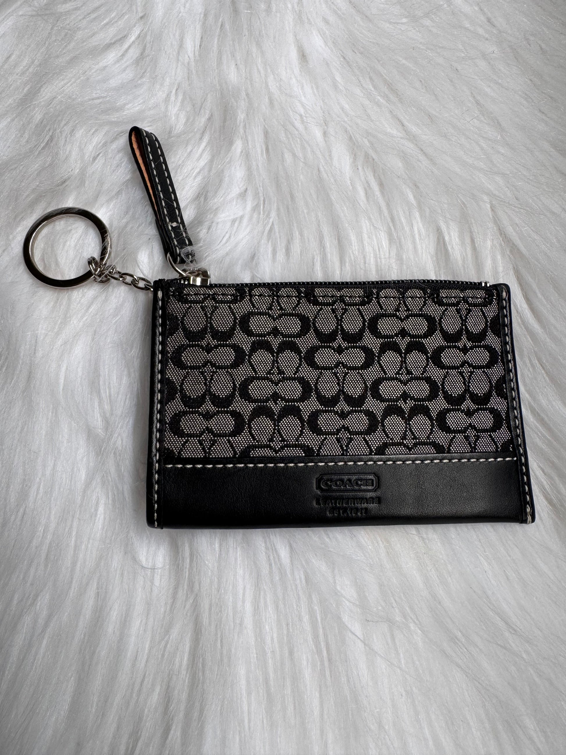 Mini monedero con una práctica ranura en uno de los lados por fuera lo que lo hace versátil para llevar objetos esenciales como tarjetas o tu identificación, y en la parte interior monedas y llaves.