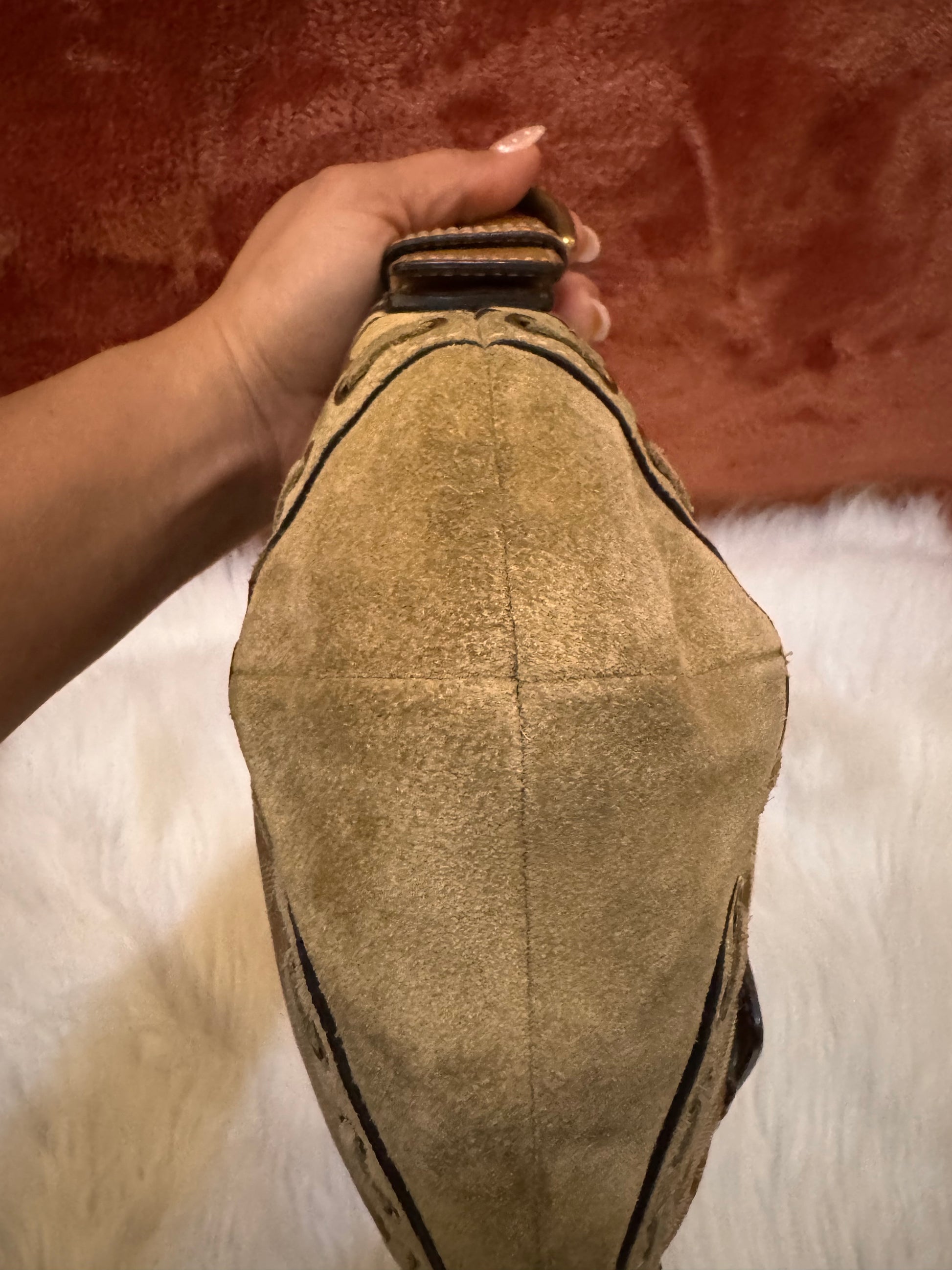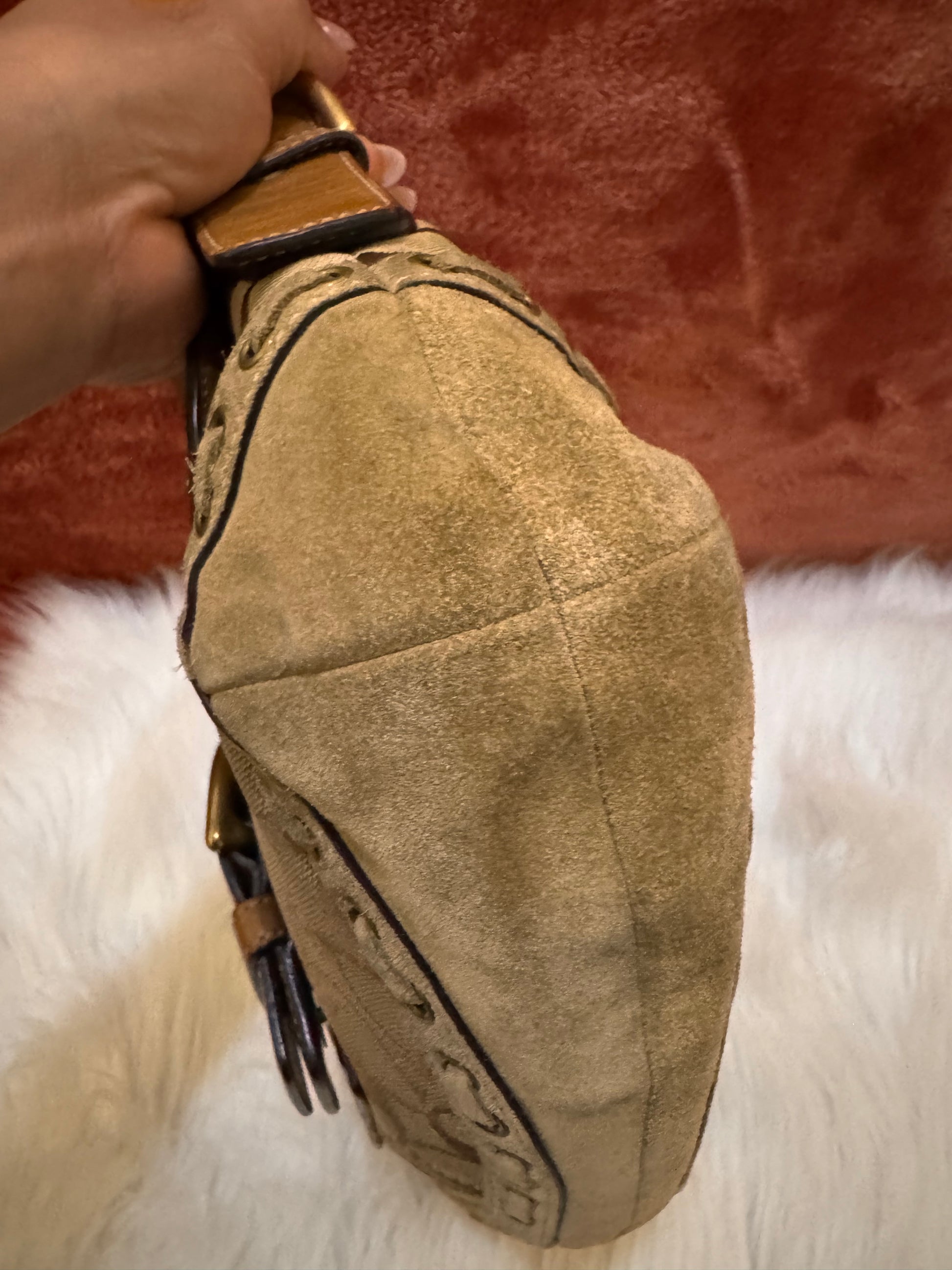 Condicion: Muy buena! Pequeñas marcas de uso en la parte de la gamuza como es común en bolsos de este material.